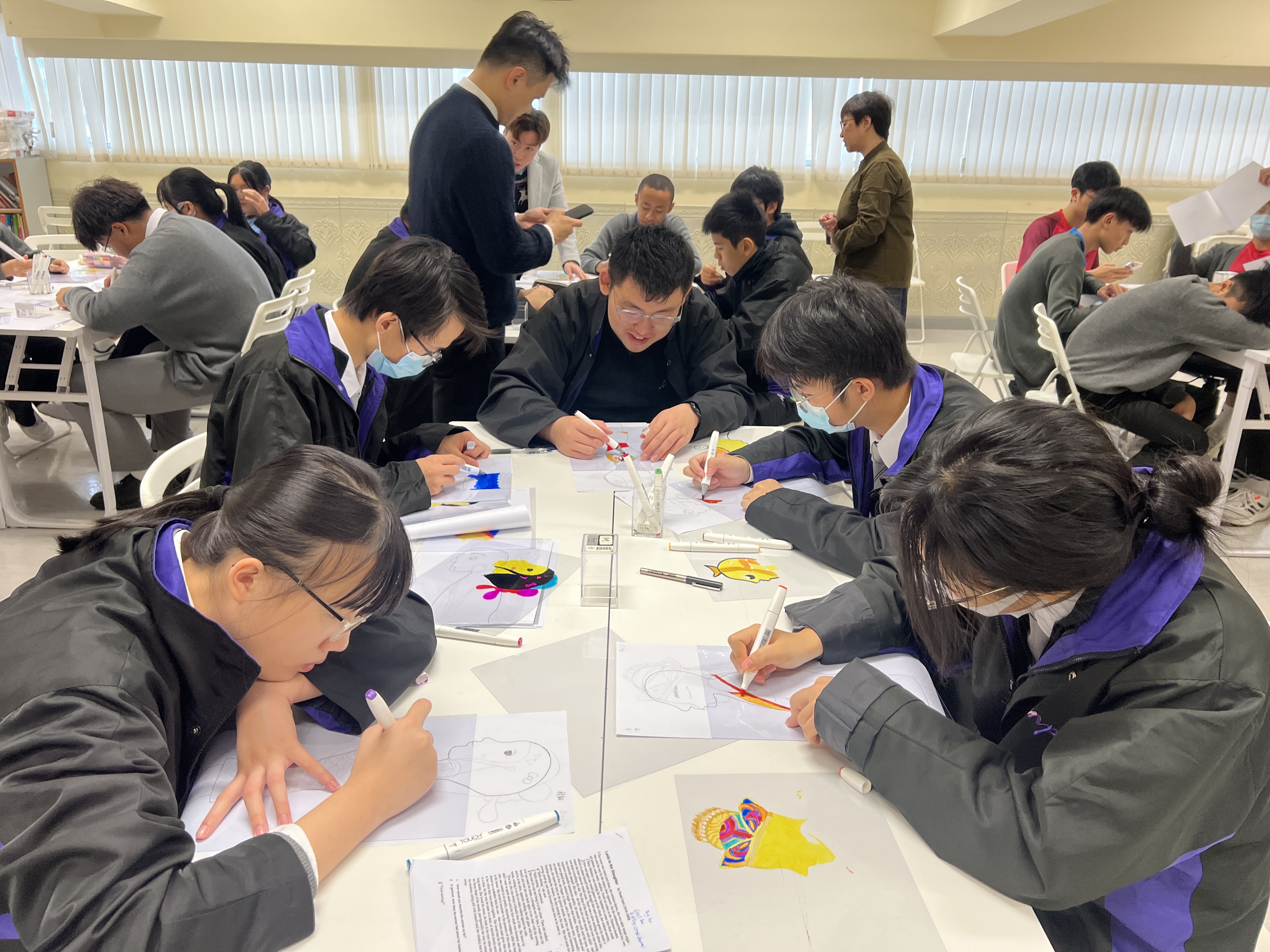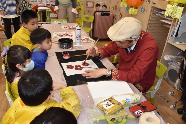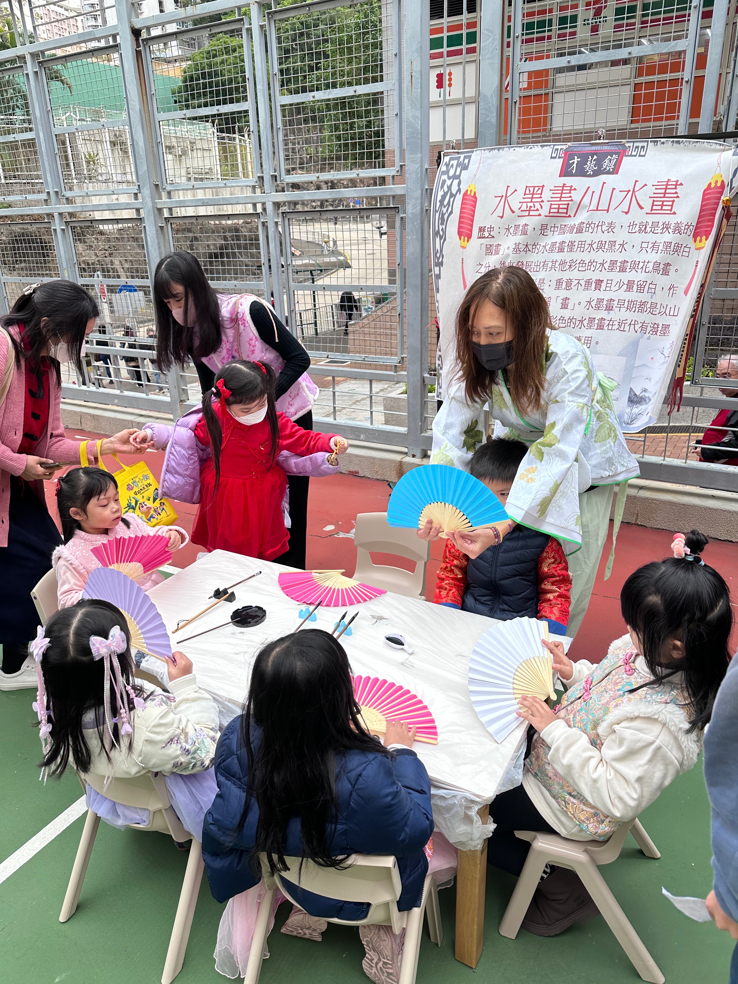 在扇上畫上獨一無二的圖案,導師會預備參考圖案讓學生跟着畫出或自由創作,