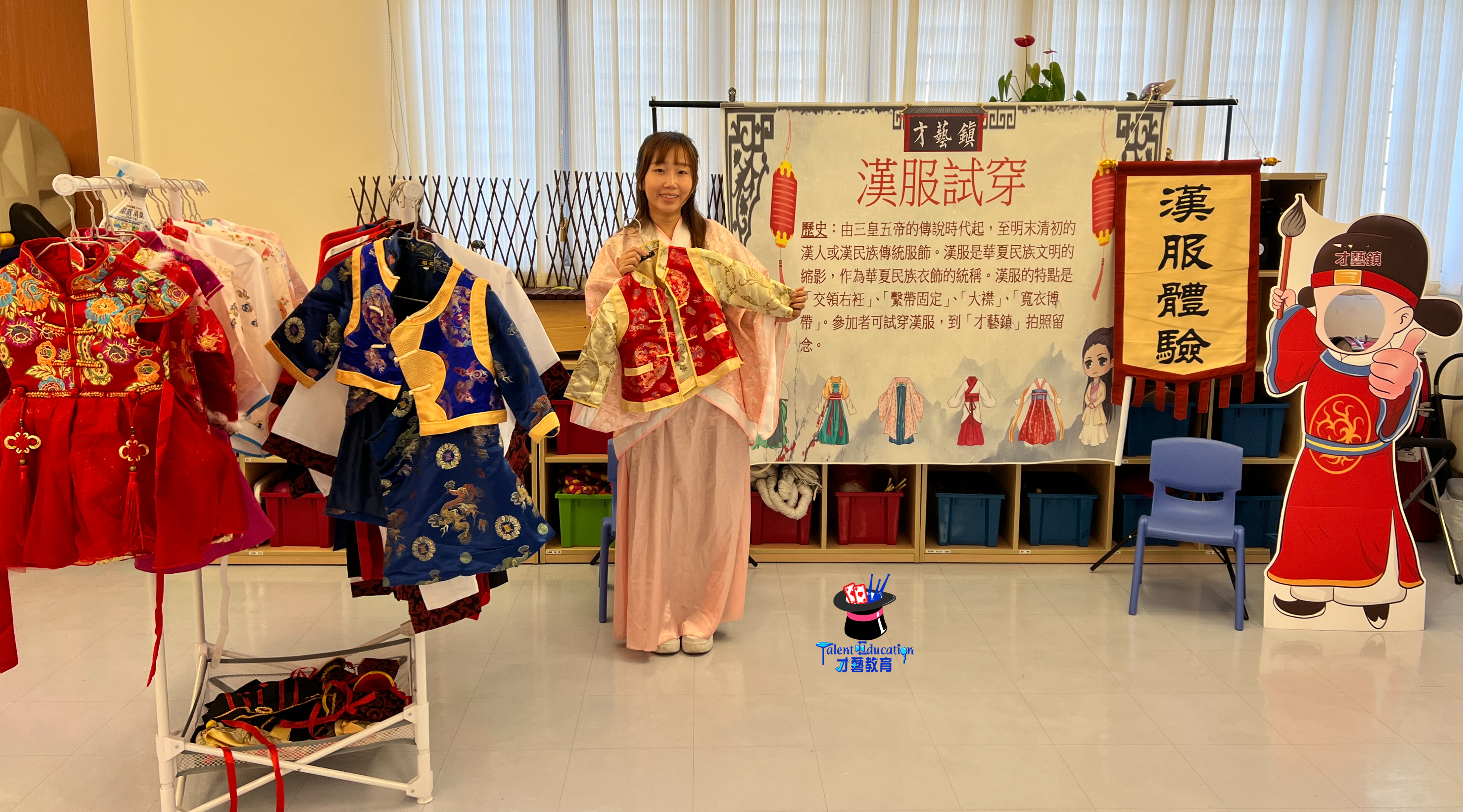 學生可試穿漢服,體驗傳統的服飾,再比較一下跟現代服飾的分別。