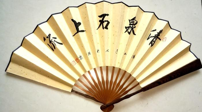 書寫在扇面上的書法。扇子是古人搧風引涼的器具,