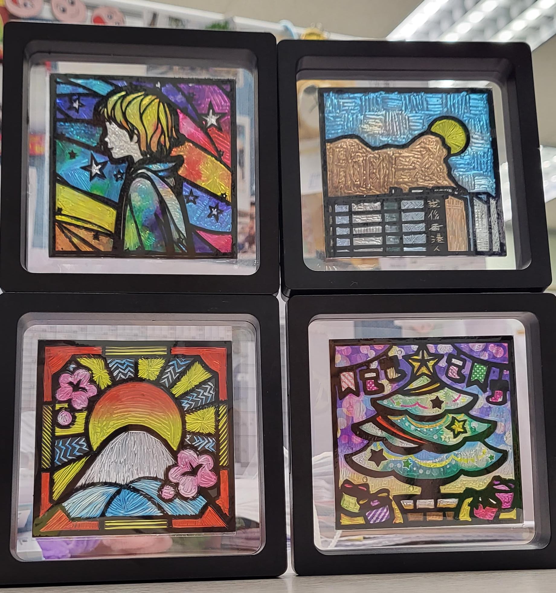 • 課程內容:學員將使用兩把雕刻刀在預先印有圖案的PVC矽膠片上進行雕刻,創造出如玻璃般質感的作品。這些作品在不同光線下會展現出獨特的裝飾效果。
